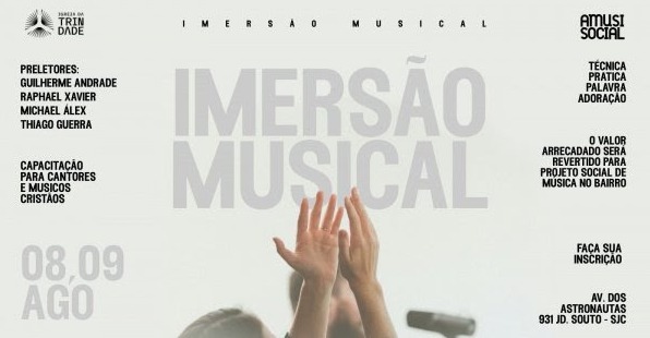 A Igreja Bíblica da Trindade (IBT), em um esforço contínuo de aprimoramento e comunhão, enviou seus músicos para participar da “Imersão Musical” na Igreja da Trindade, em São José dos Campos, nos dias 8 e 9 de agosto de 2025 . O evento foi um tempo de aprendizado e crescimento para os participantes da IBT.